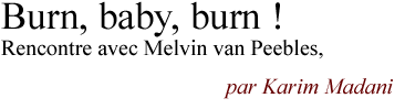 Burn, baby, burn ! Rencontre avec Melvin van Peebles, par Karim Madani © Les amis d'Inventaire/Invention et les auteurs - tous droits réservés - 2003 w w w . i n v e n t a i r e - i n v e n t i o n . c o m