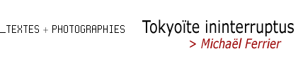 Ville sans cesse et depuis des siècles quadrillée, fichée, policée, et depuis des siècles rebelle à toute base de données, à tout moteur de recherche, à toute mise à l'index. Ville peuplée de salarymen en costume monotone et pourtant irréductible aux conformismes du vêtement et de la pensée. Ville possédant sans doute le plus haut degré d'informatisation et de technicité du monde entier, ponctuée de systèmes de contrôle et de vidéo-surveillances, mais réfractaire au pilotage automatique des corps et à la standardisation des idées, tels qu'ils se pratiquent aujourd'hui de plus en plus dans le monde dit civilisé. Ville traversée de toutes parts de lignes, de couloirs, de ponts, de réseaux, de voitures et de vélos, de véhicules, de trains, et qui connaît finalement un mode de transport privilégié : l'errance, et un mode de vie : le questionnement.